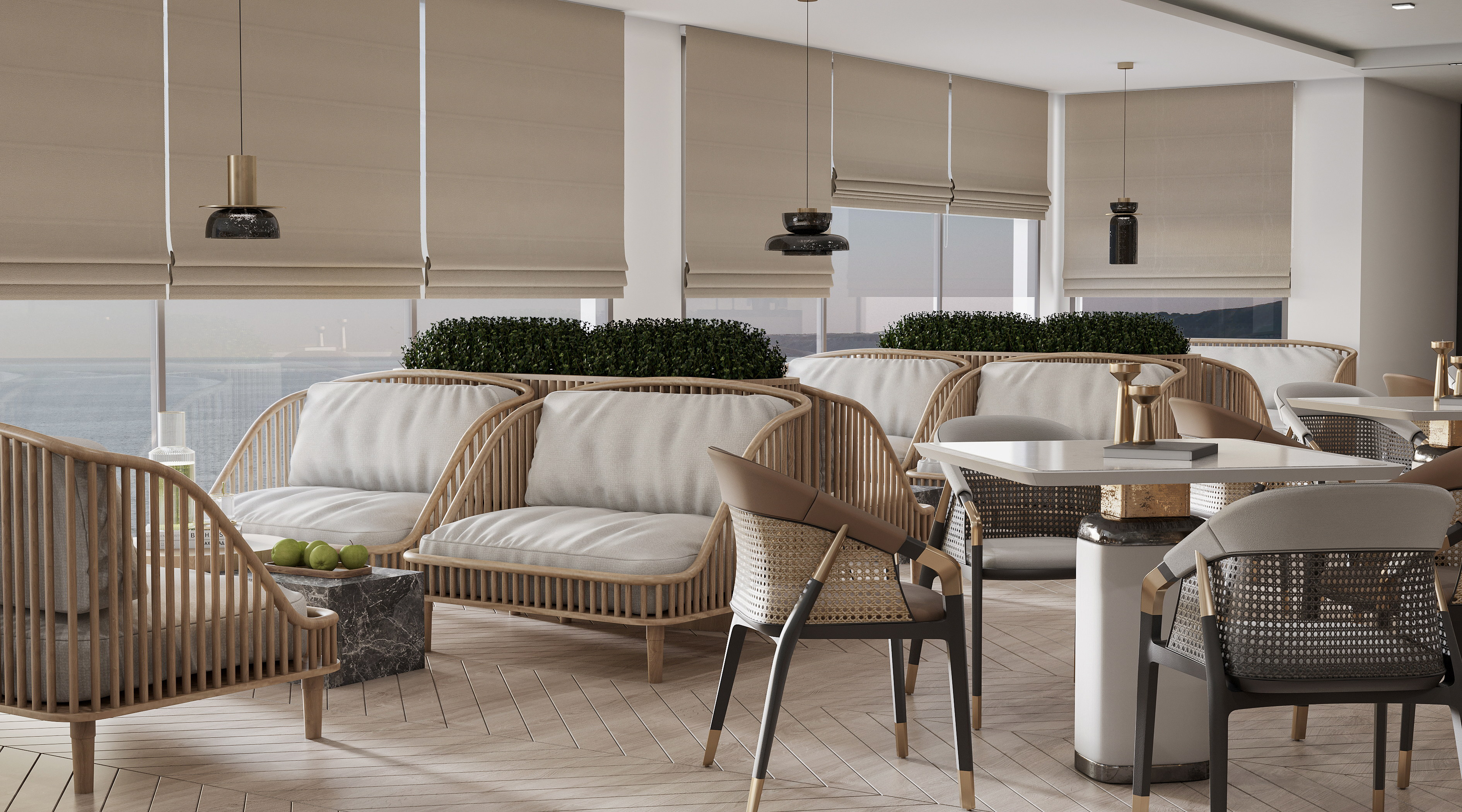Iz Flower Side Beach Hotel için yürüttüğümüz projede, otelin misafirlerini ilk anda karşılayan lobby bar ve danışma alanlarının tasarım ve uygulama sürecini üstlendik. Misafirlerin kendilerini rahat, özel ve tatilde olduklarını hissetmeleri için modern, şık ve aynı zamanda sıcak bir atmosfer yaratmayı hedefledik. Tasarım sürecinde otelin genel konseptine uyum sağlarken, mekâna özgün bir kimlik kazandıracak detaylara da yer verdik. Renk seçimlerinde Akdeniz’in ferah ve doğal tonlarından ilham aldık. Malzeme tercihlerimizde dayanıklılık ve estetik unsurlarını birlikte değerlendirdik.