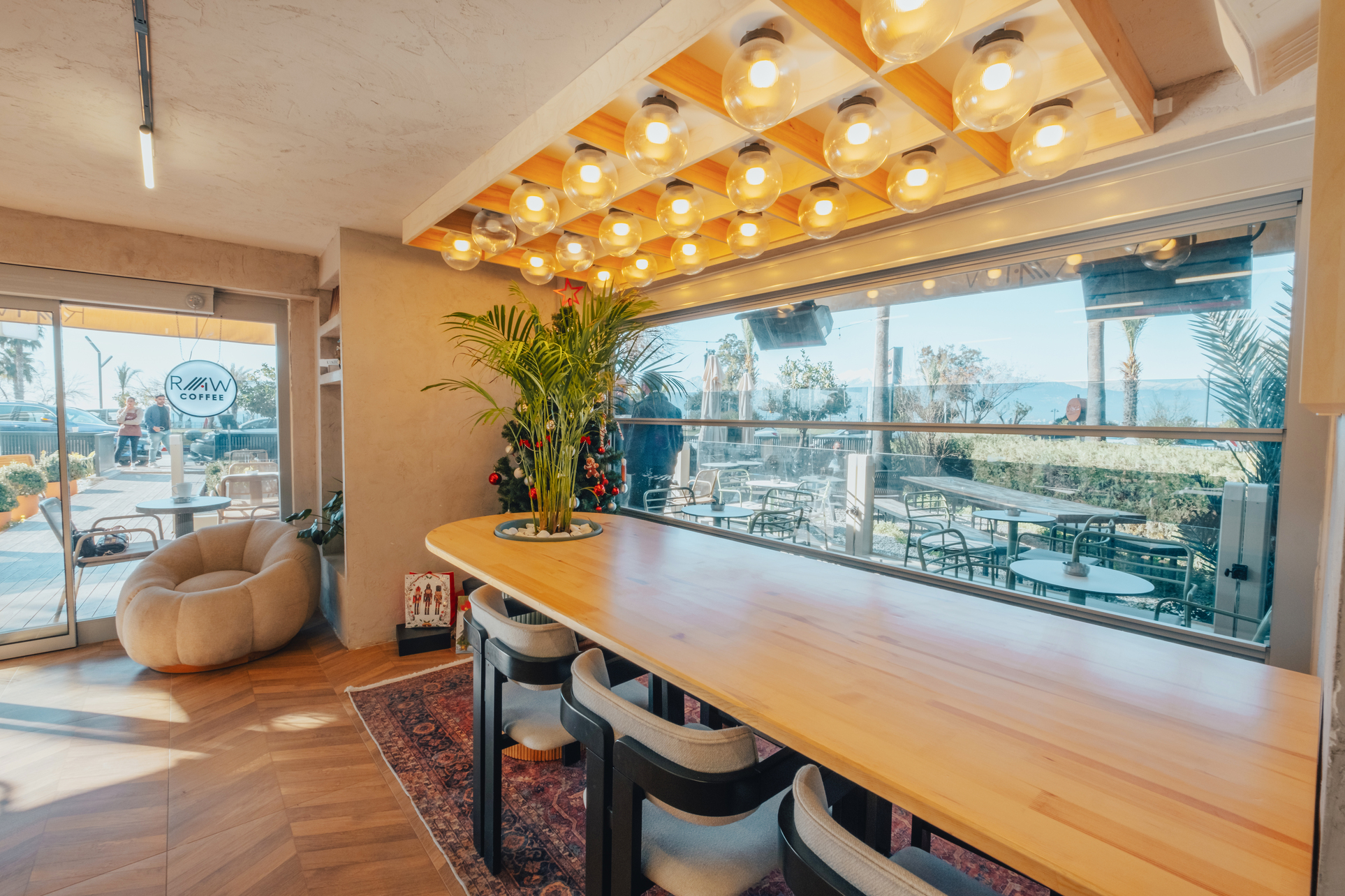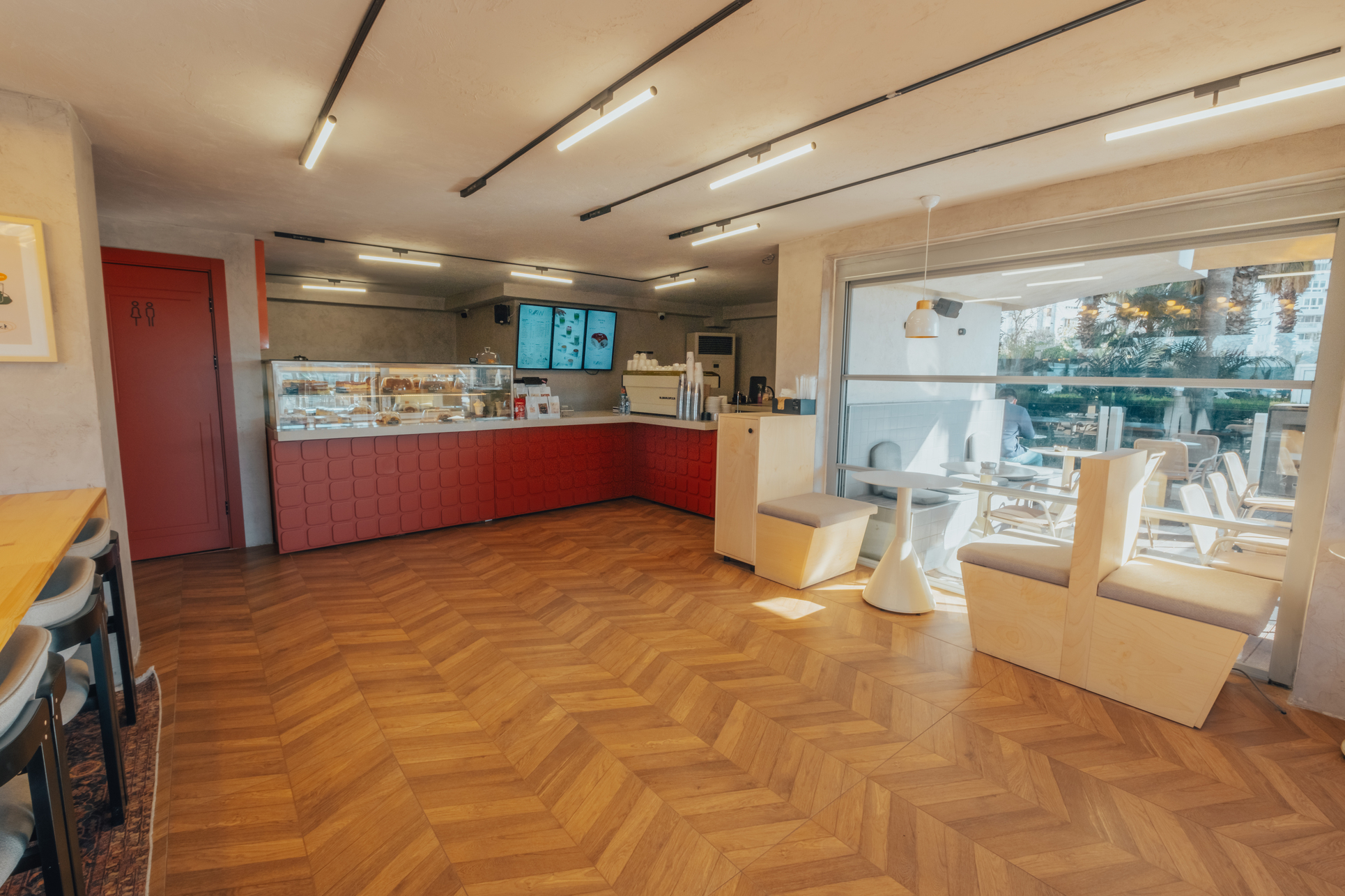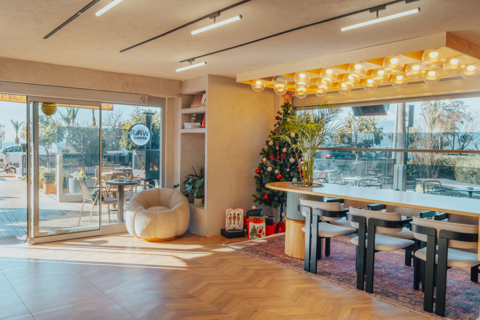 Raw Coffee Roaster’ın Lara şubesinde mekana sıcaklık ve huzur katacak doğal toprak tonlarını tercih ettik. Ahşap detaylar, bitki örtüsü ve minimalist dokunuşlarla konforlu bir atmosfer yaratmaya özen gösterdik. Konyaaltı’nın dinamik ve canlı ruhunu yansıtan bu yeni şubede, hem estetik hem de işlevselliği bir arada sunduk. Keyifli bir kahve deneyimi yaşamanız için her detayı titizlikle düşündük.