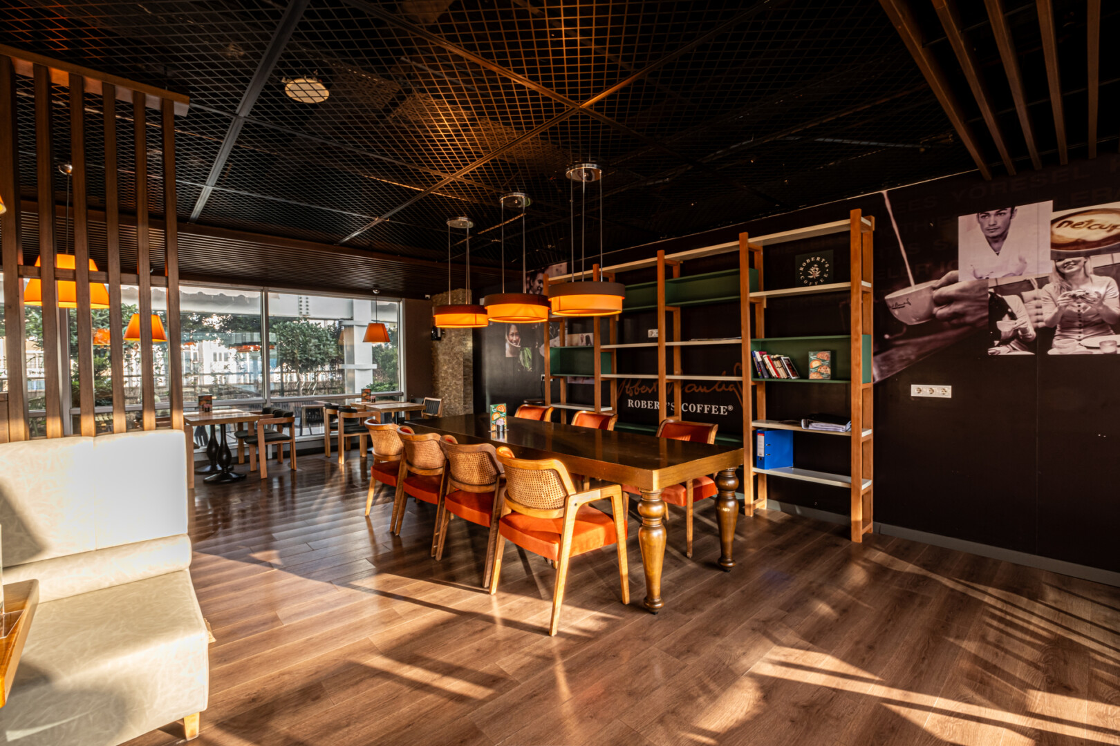 Aydınlatmada sıcak bir atmosferi destekleyen modern armatürler kullanıldı. Malzeme seçiminde ise sade ve yalın yüzeylerle, markanın doğal ve güven veren kimliğini pekiştiren bir bütünlük sağlandı. Sonuçta Roberts Coffee Markantalya şubesi, kahvenin lezzetini davetkâr ve konforlu bir mekân deneyimiyle birleştiren çağdaş bir tasarıma dönüştü.